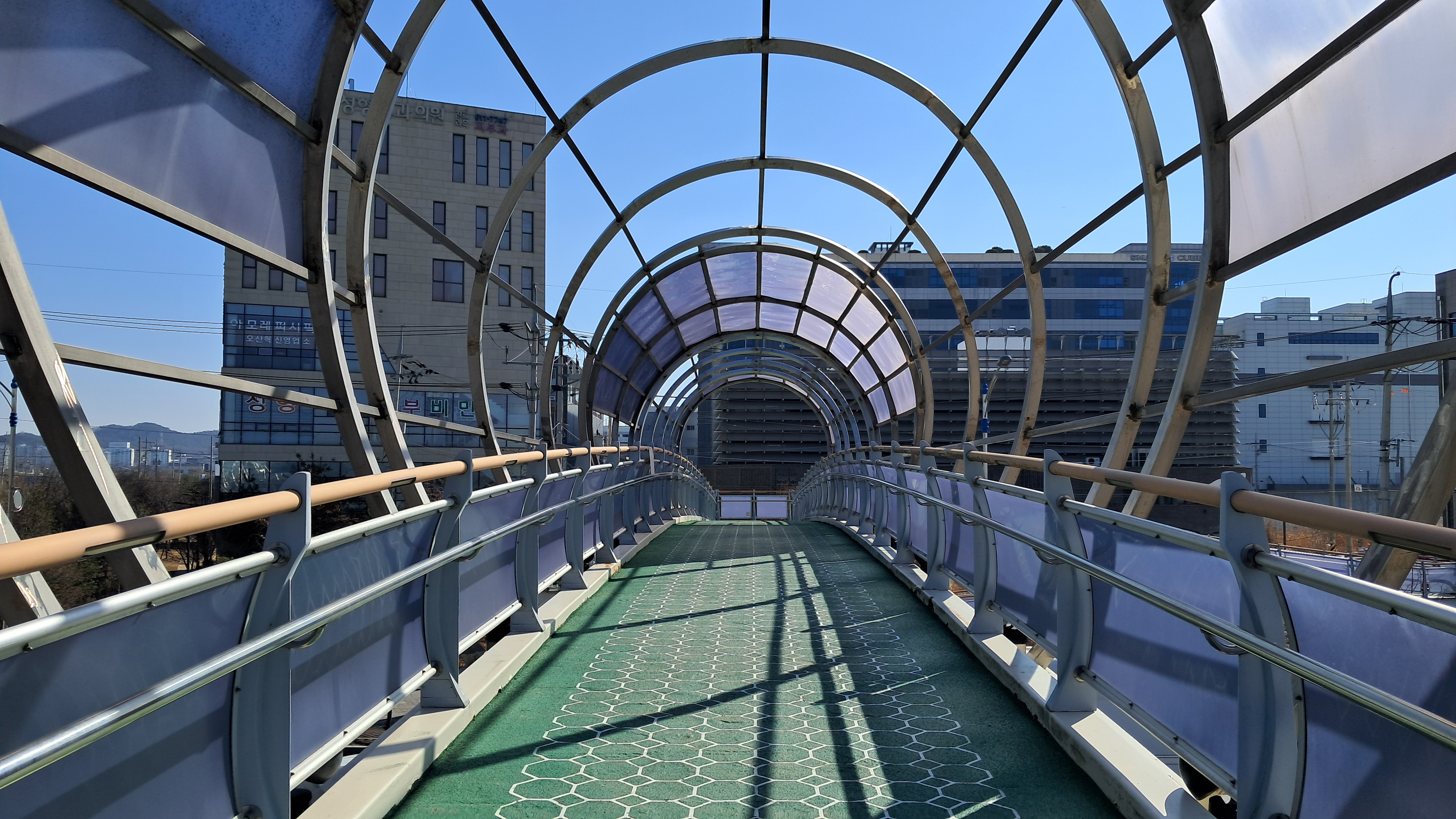 육교교각 아래를 통과해서 도로를 따라 아래로 난 길을 걸어갑니다.