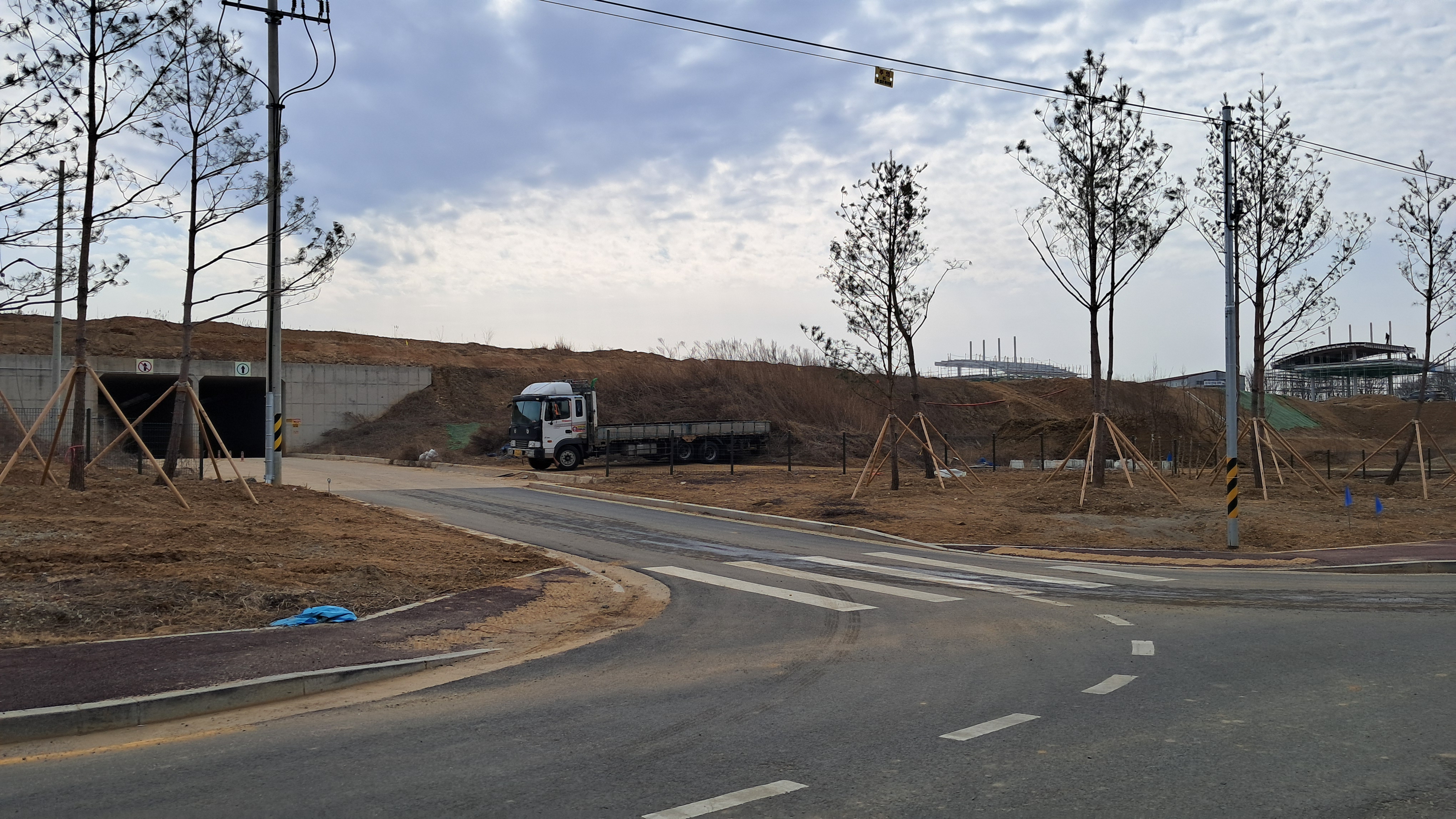 광광버스 회사 주차장을 지나면 다시 도로 공사현장을 만납니다.