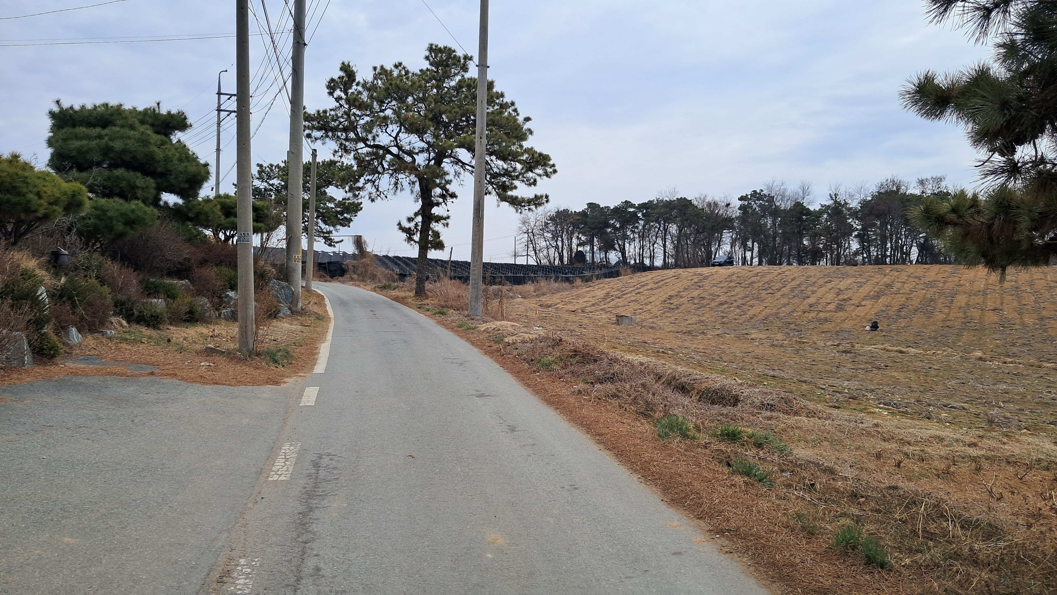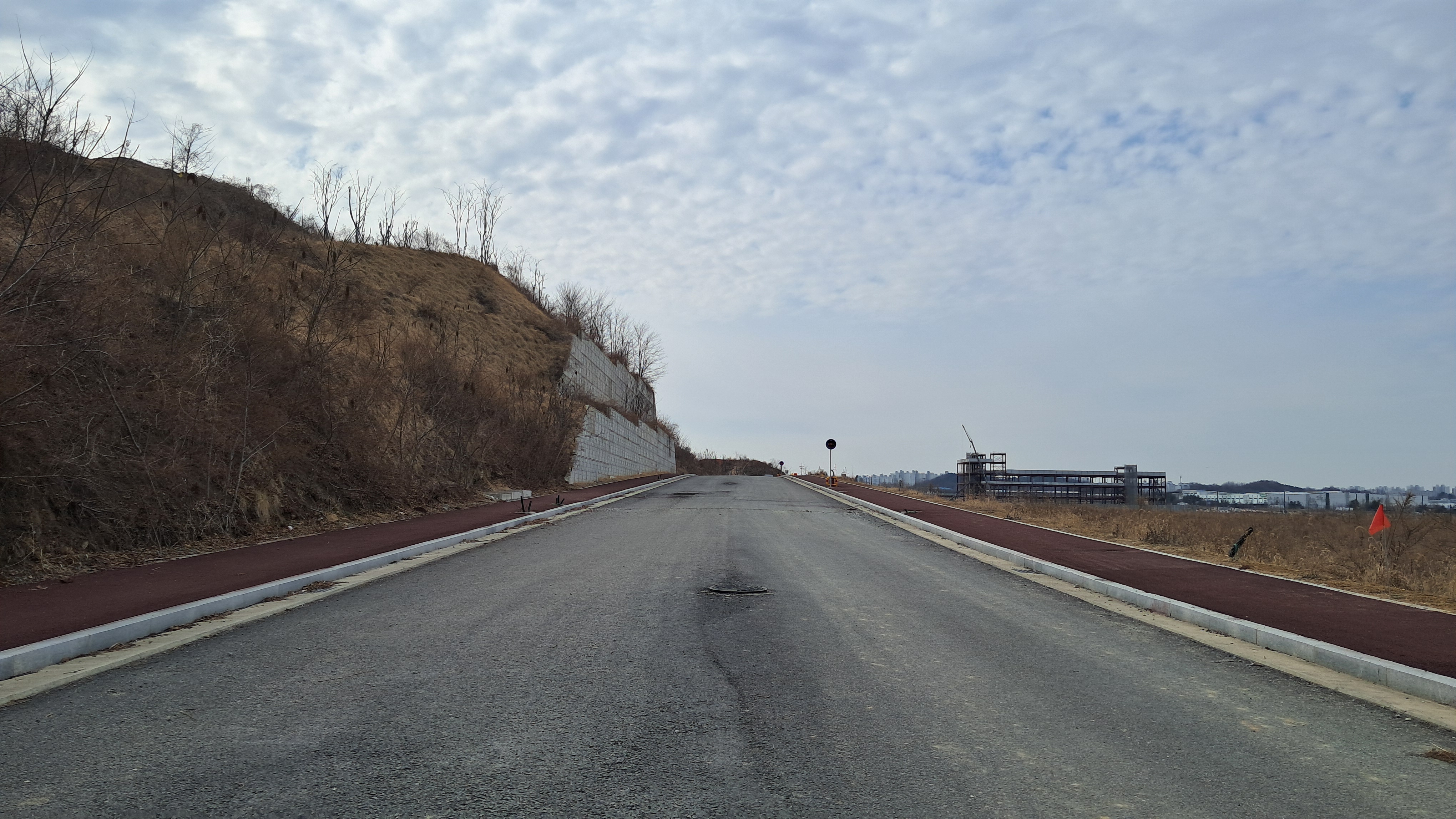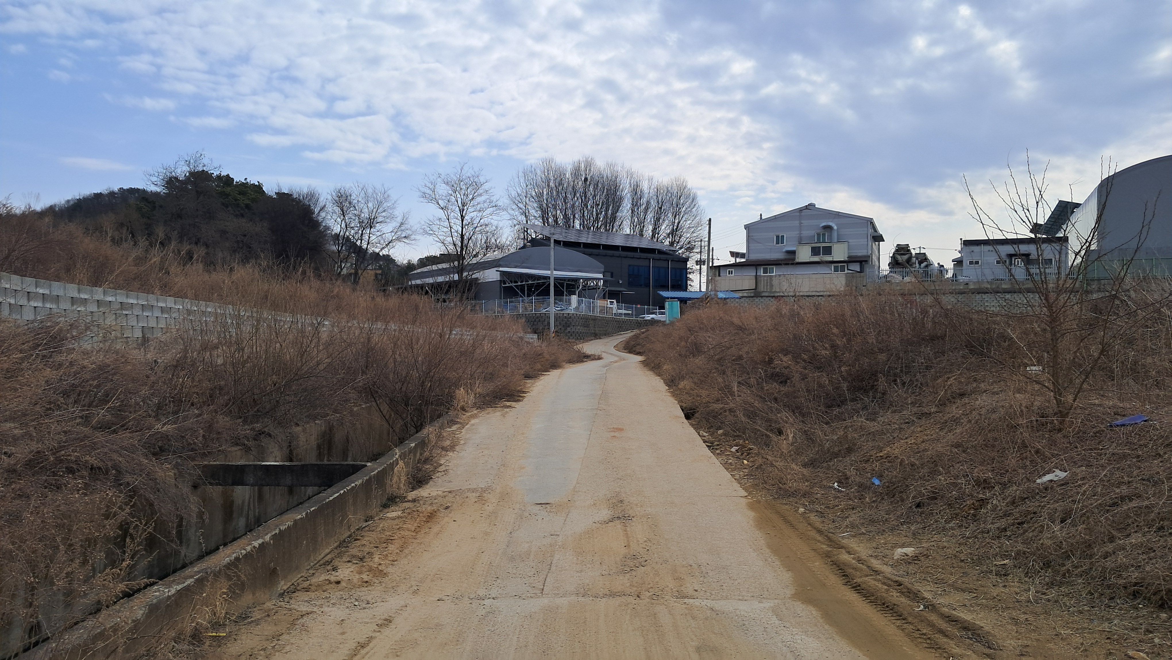 한번 좌측으로 꺾어 공장지역을 통과하면 도로를 만납니다.