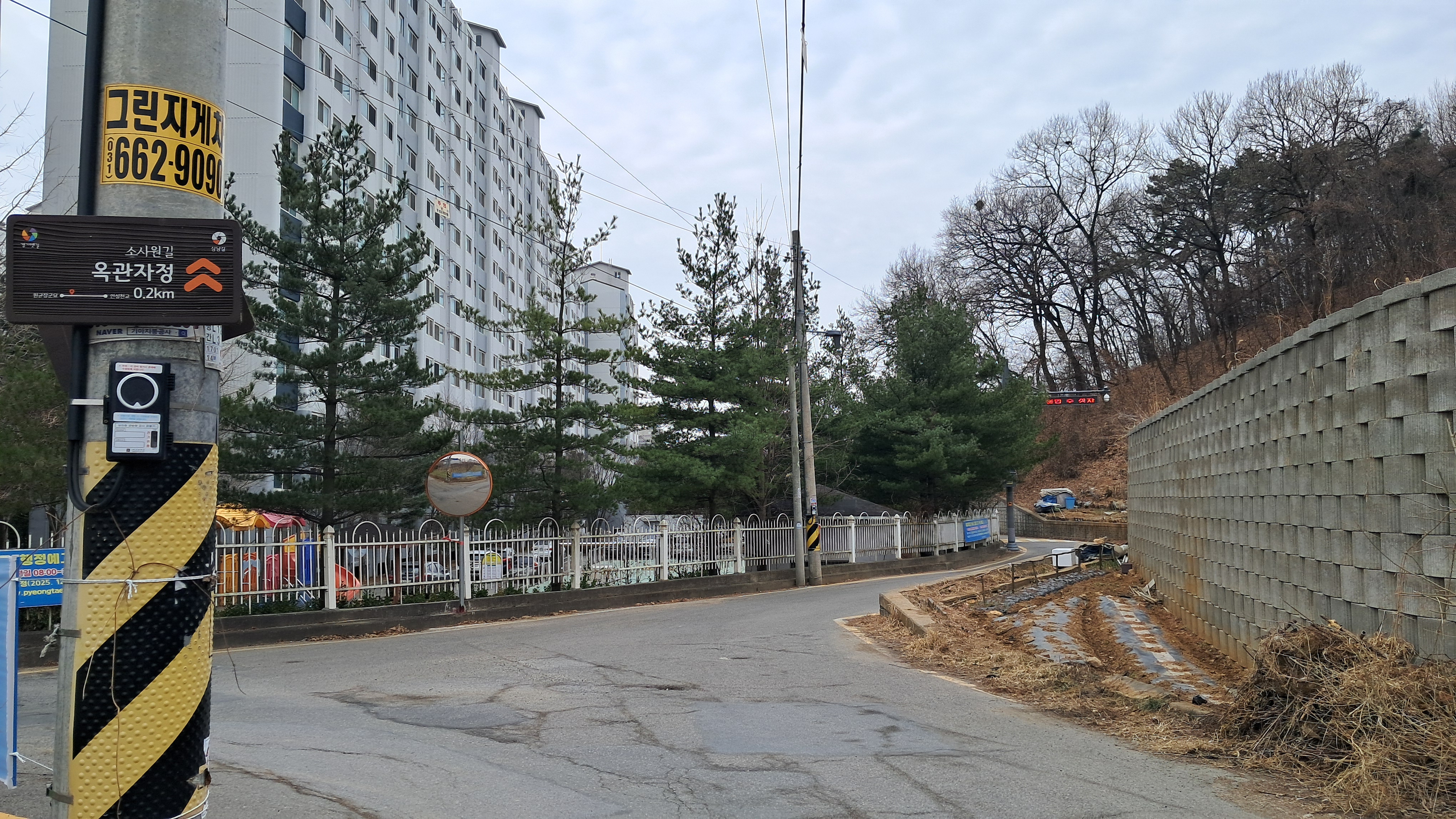 내리막길로 내려오면 아파트 단지가 보입니다.