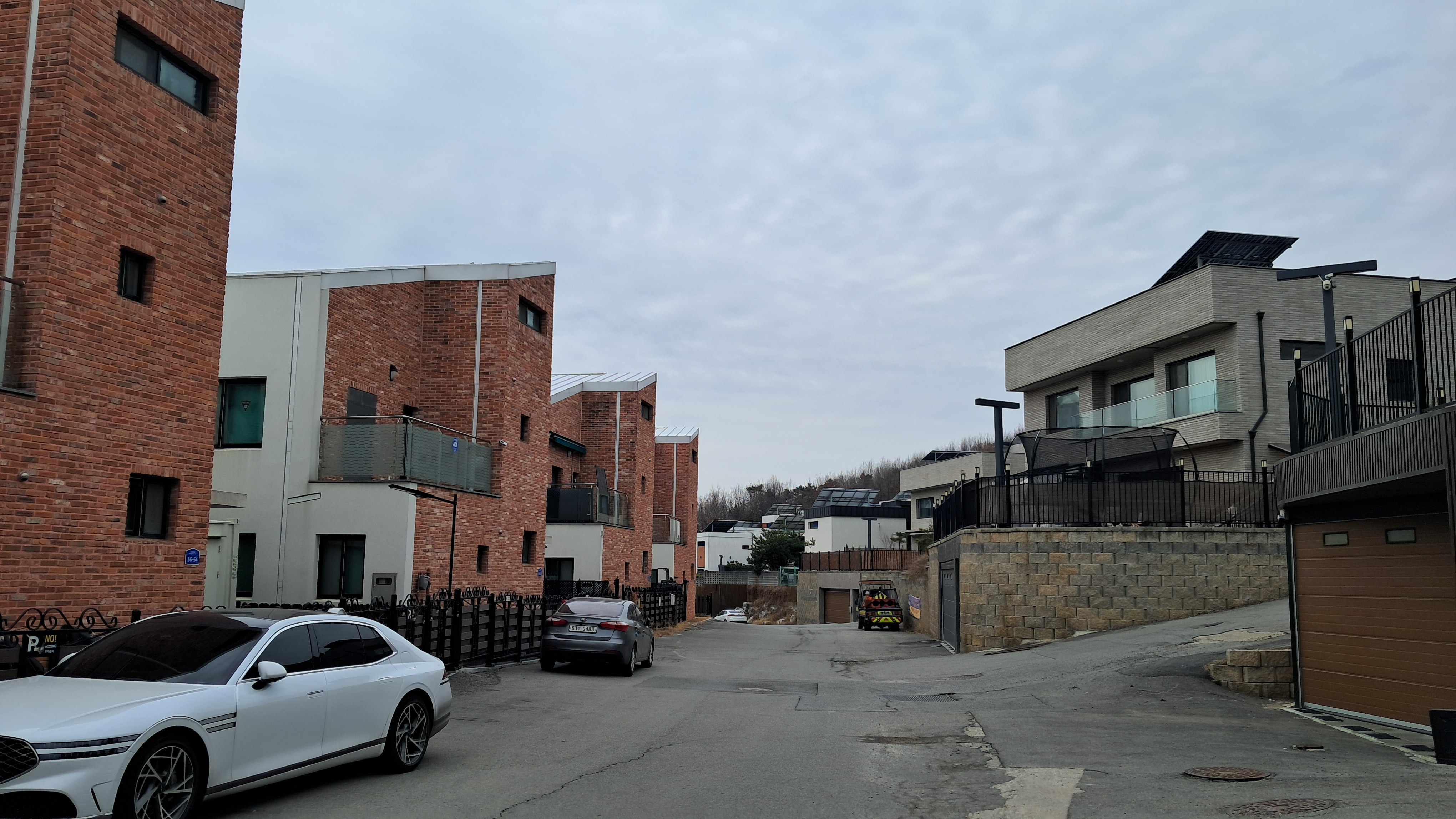고개를 올라오면 비슷한 건물이 이어진 타운하우스 단지가 있습니다.