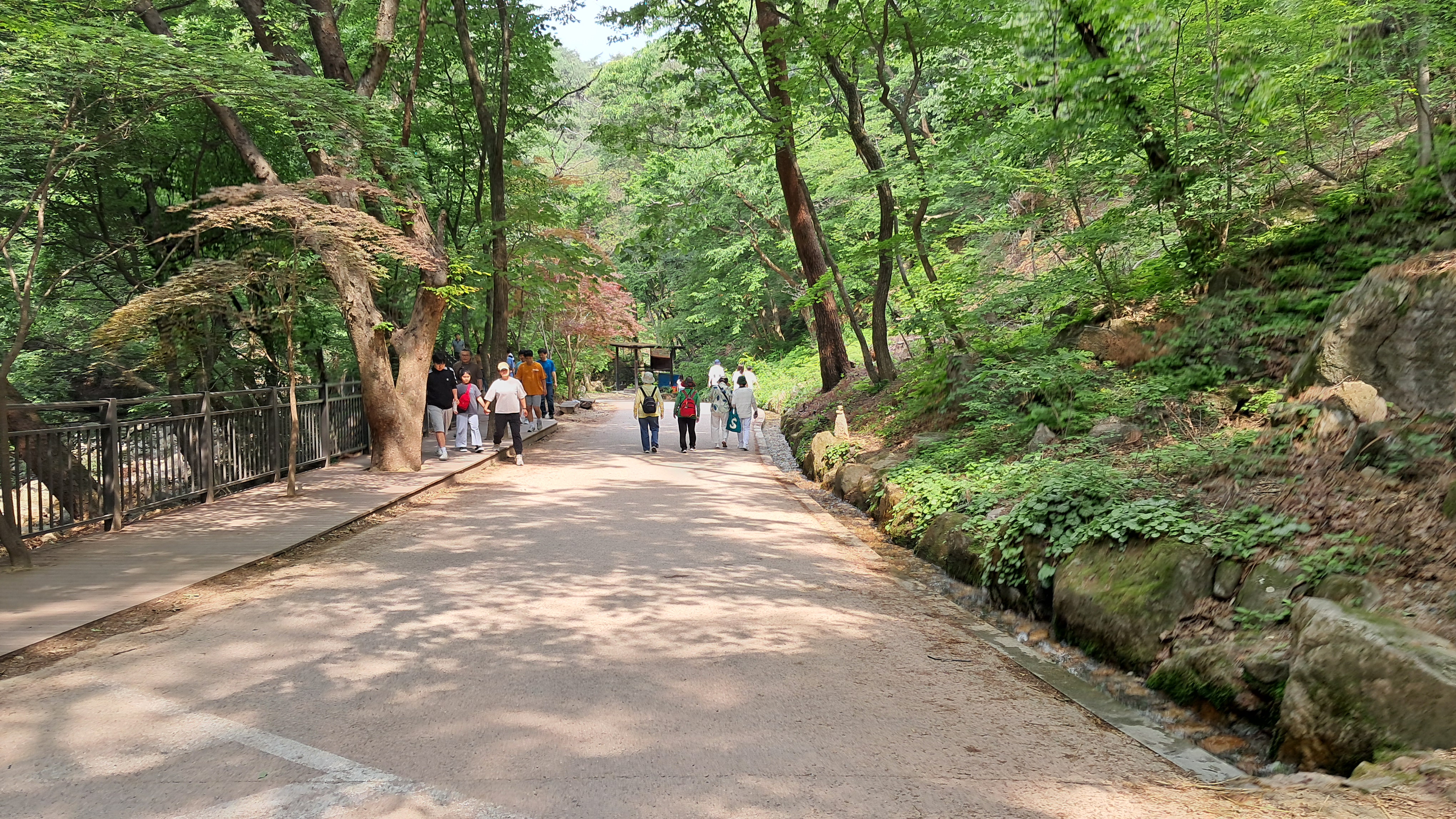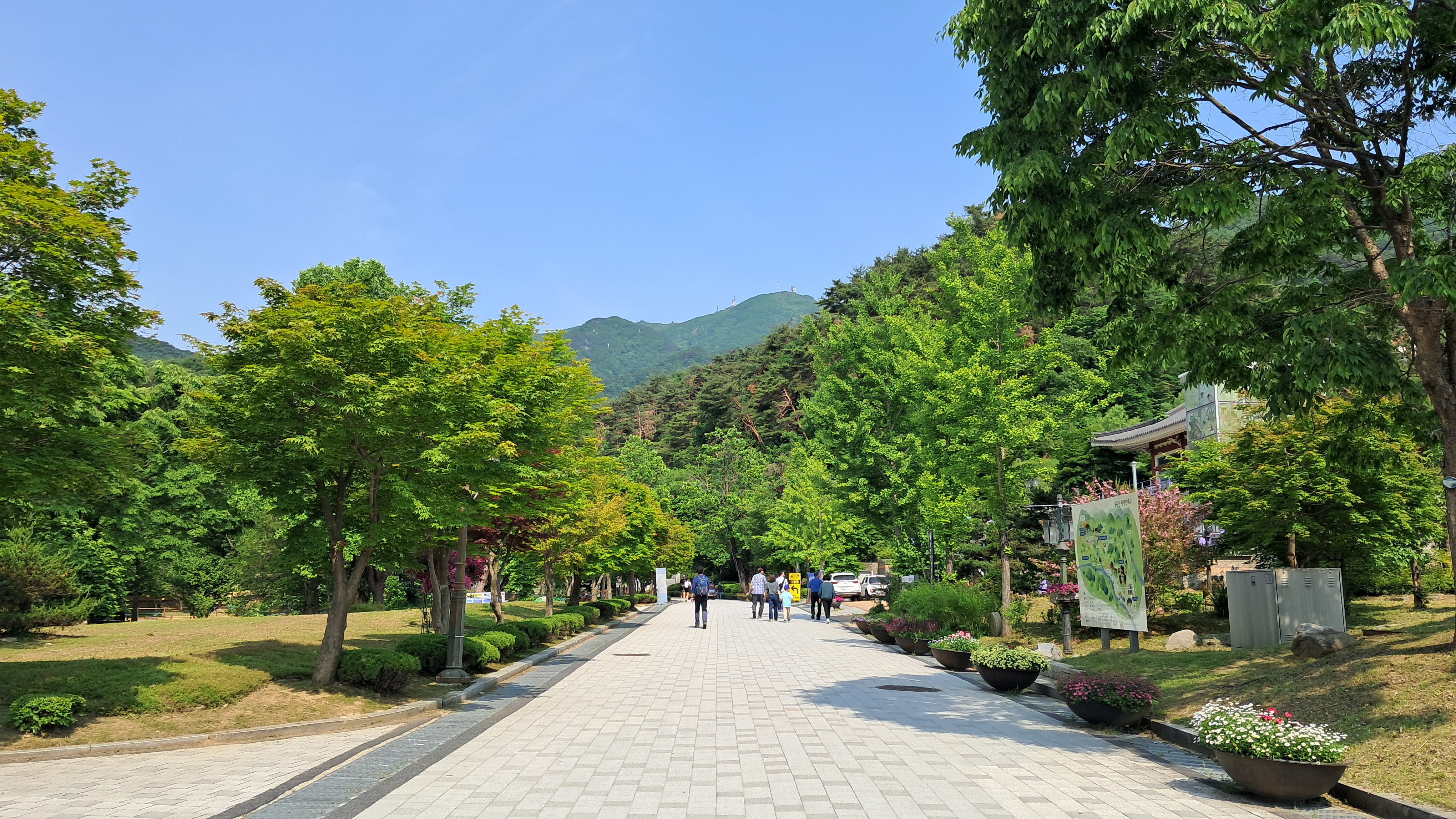 넓은 공원길을 따라 걸어갑니다.